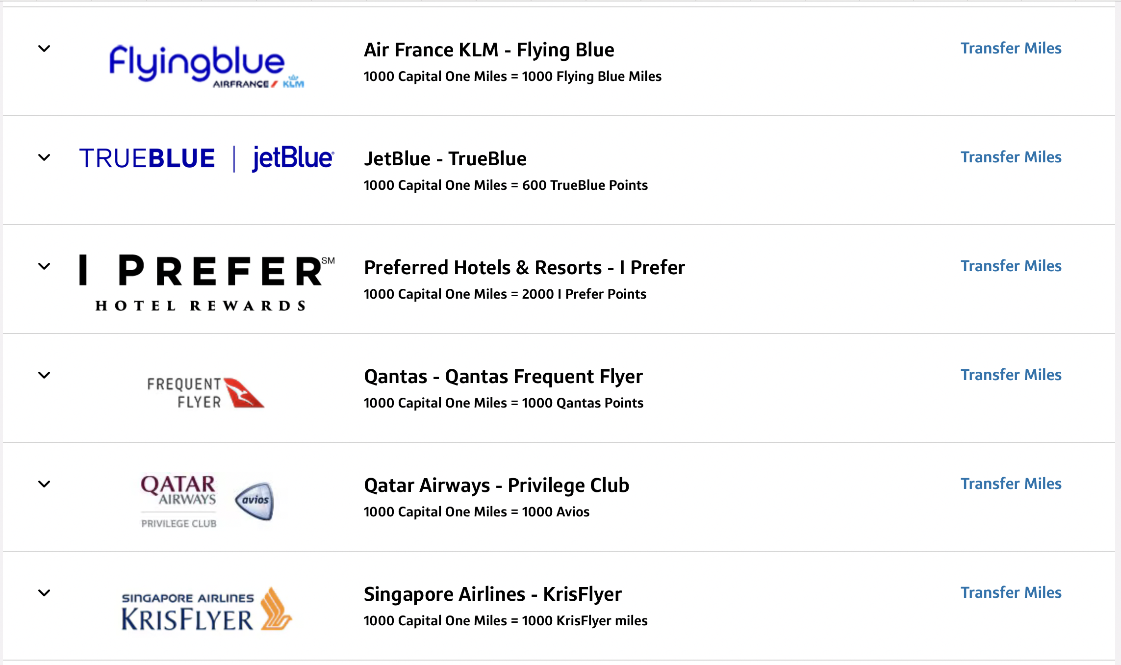 Then scroll until you find the airline or hotel transfer partner that you want to transfer miles to, and select “Transfer Miles” and follow the prompts from there.