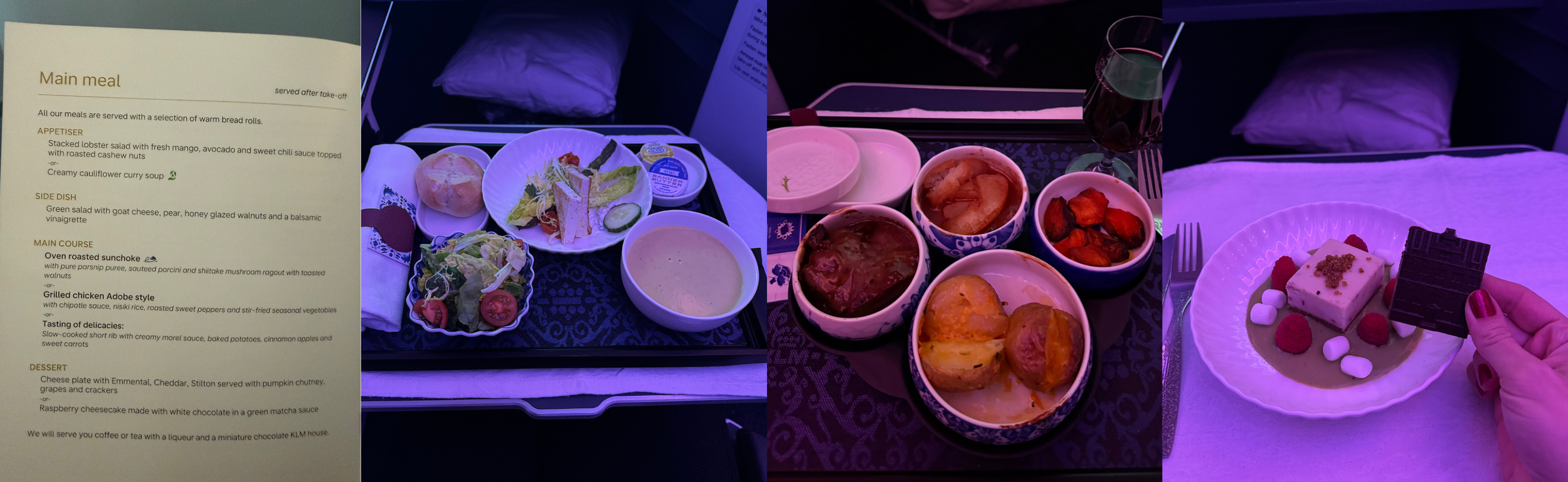 Sit back, browse the movie selection, and enjoy the exceptional KLM business class experience with a stellar menu, tasty beverage selection, and excellent service. And don’t forget to pick out the perfect Delft house!