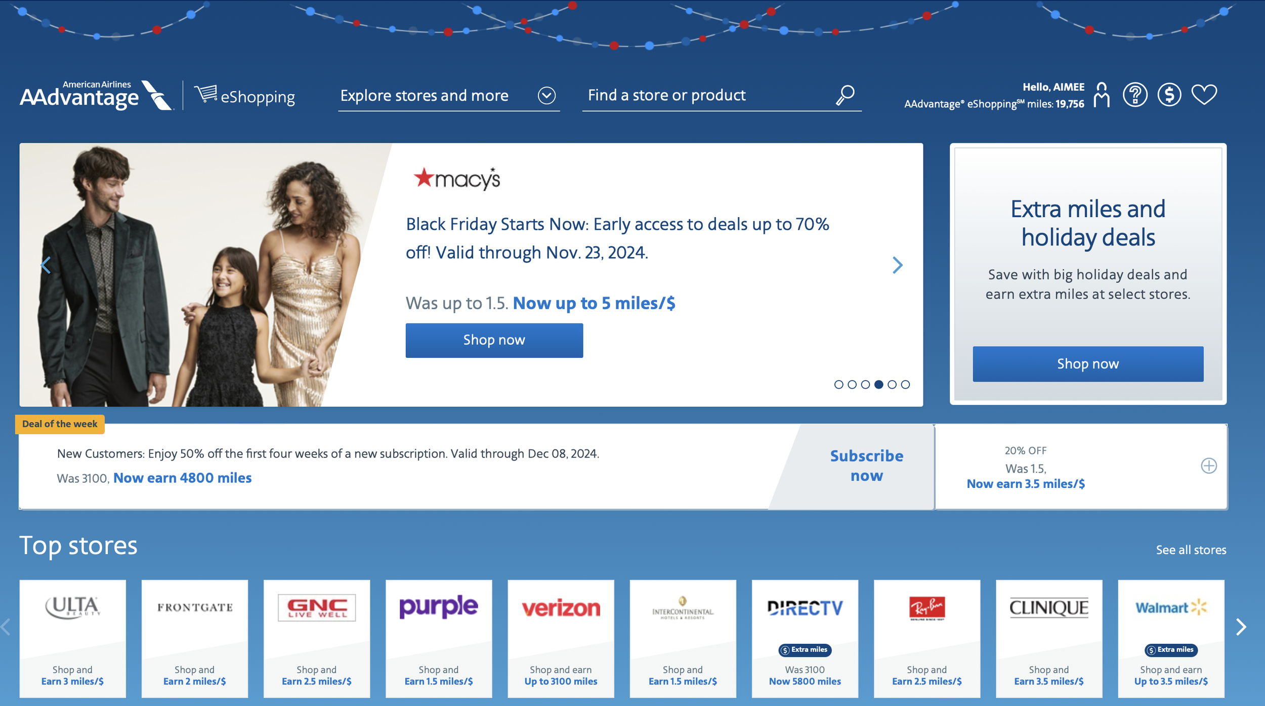 The other shopping portal you’ll find me using most is the American Airlines AAdvantage eShopping portal. It functions very similarly to Rakuten where you will find tons of stores to shop through and deals that change frequently.