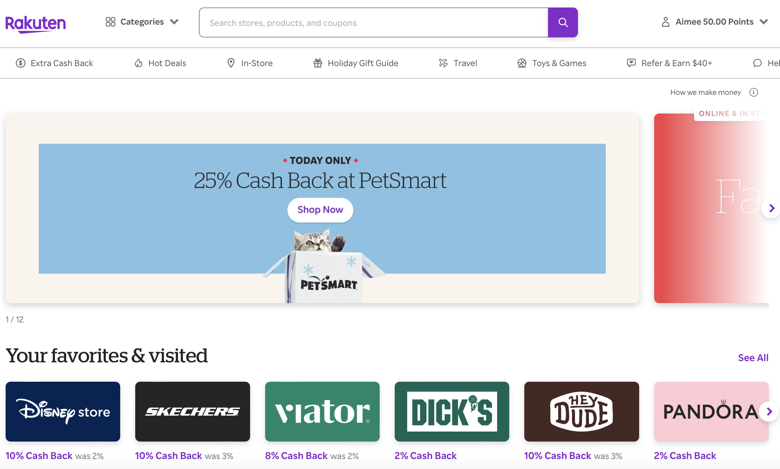 Rakuten is a shopping portal that allows you to shop through a variety of stores, find great deals on popular products, and you can easily find stores that carry the items or brands you’re looking for in their search tool. You'll find amazing elevated offers too, especially around the holidays! 🎁❄️