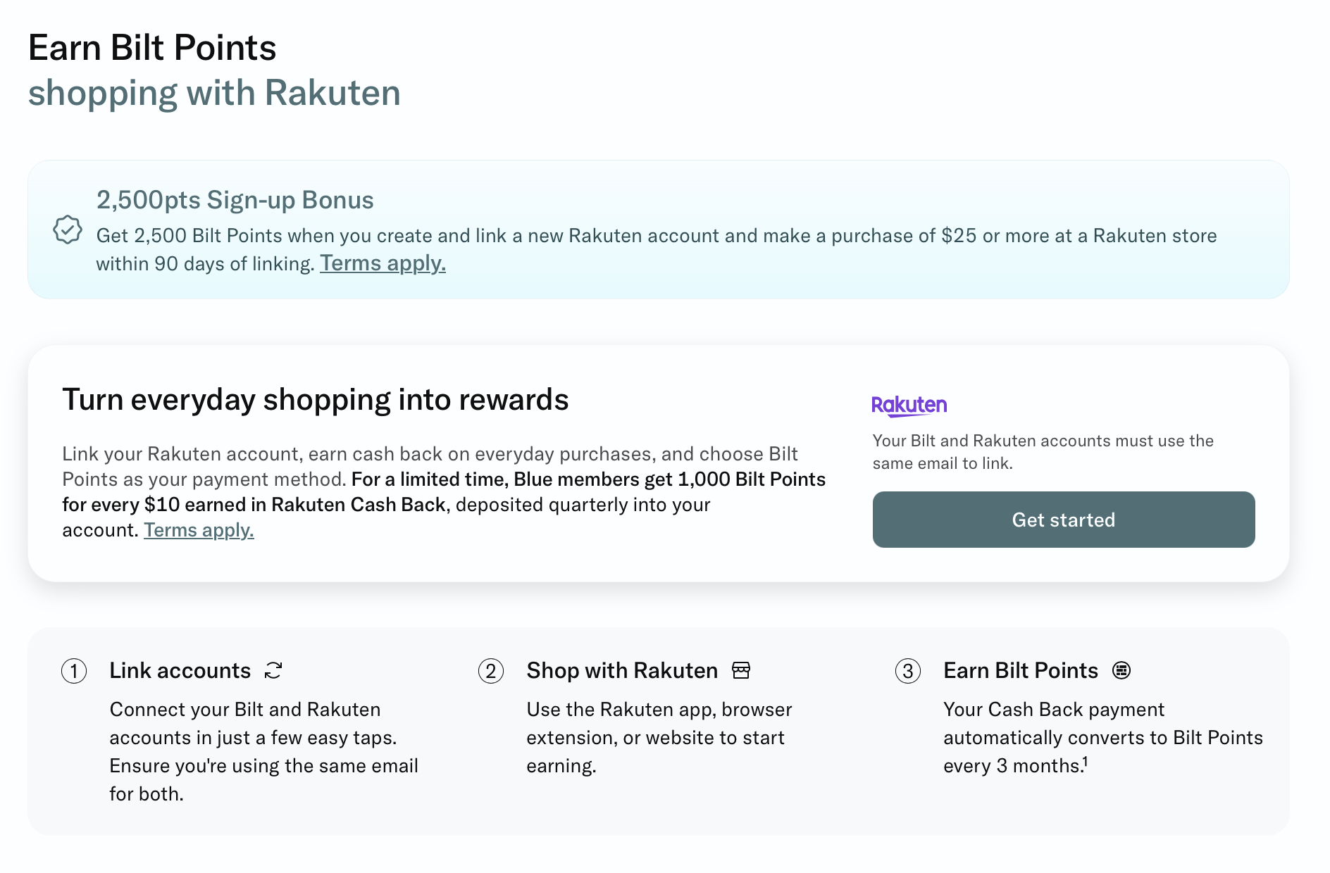 You first need to sign up for a free BILT Rewards account (*make sure to use the same email for BOTH ACCOUNTS) so that you can link these two accounts together. Then on your home page you should see a pop up or an option to link your account to Rakuten: