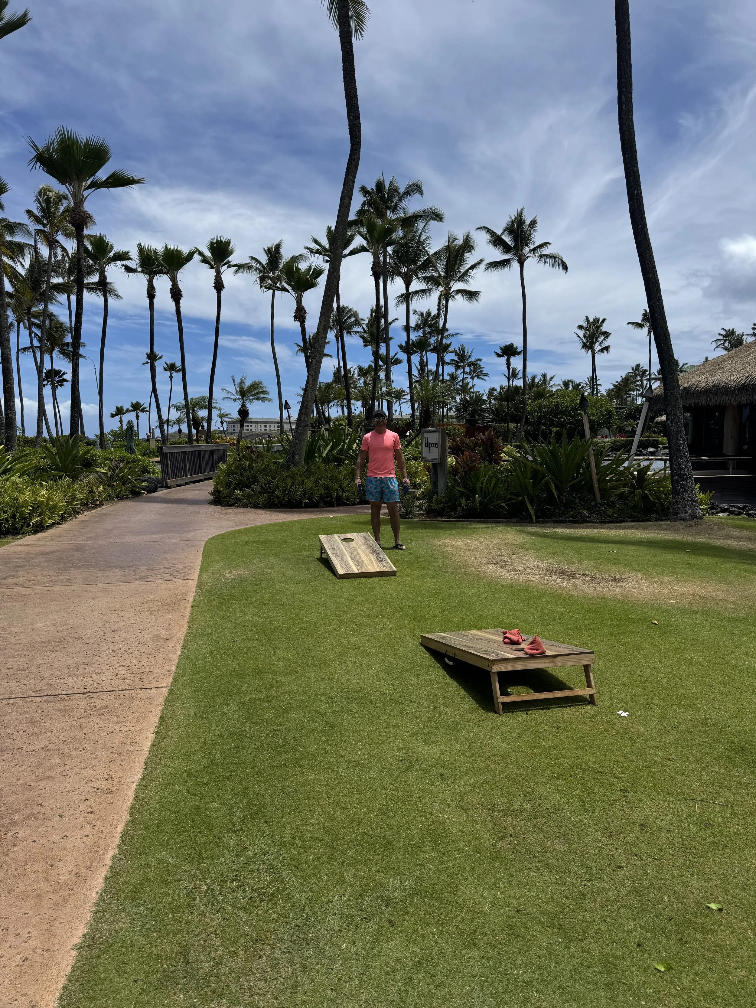 🎲 Each afternoon you can find games on the lawn by the lagoon pool, like Jenga or bags.