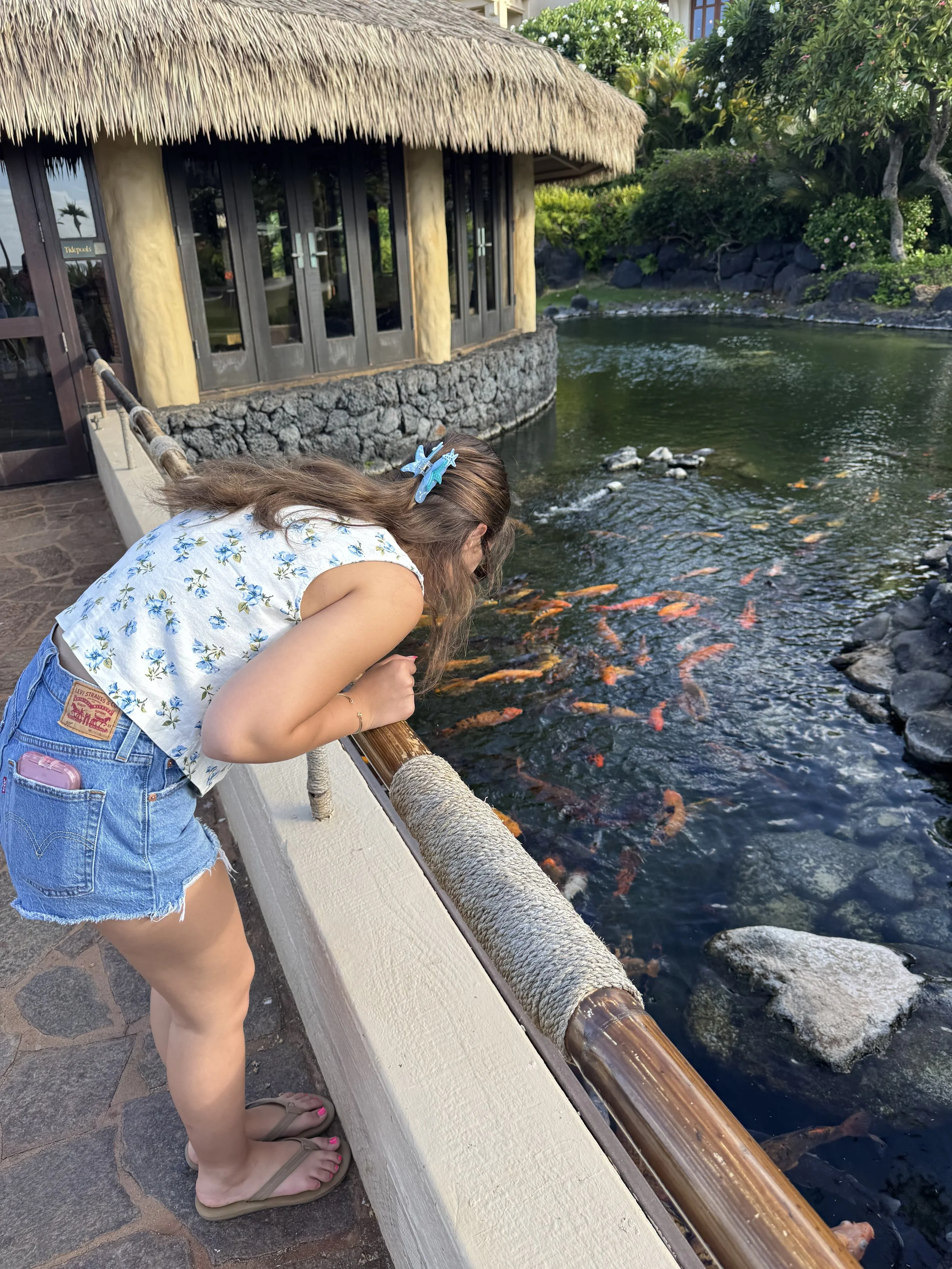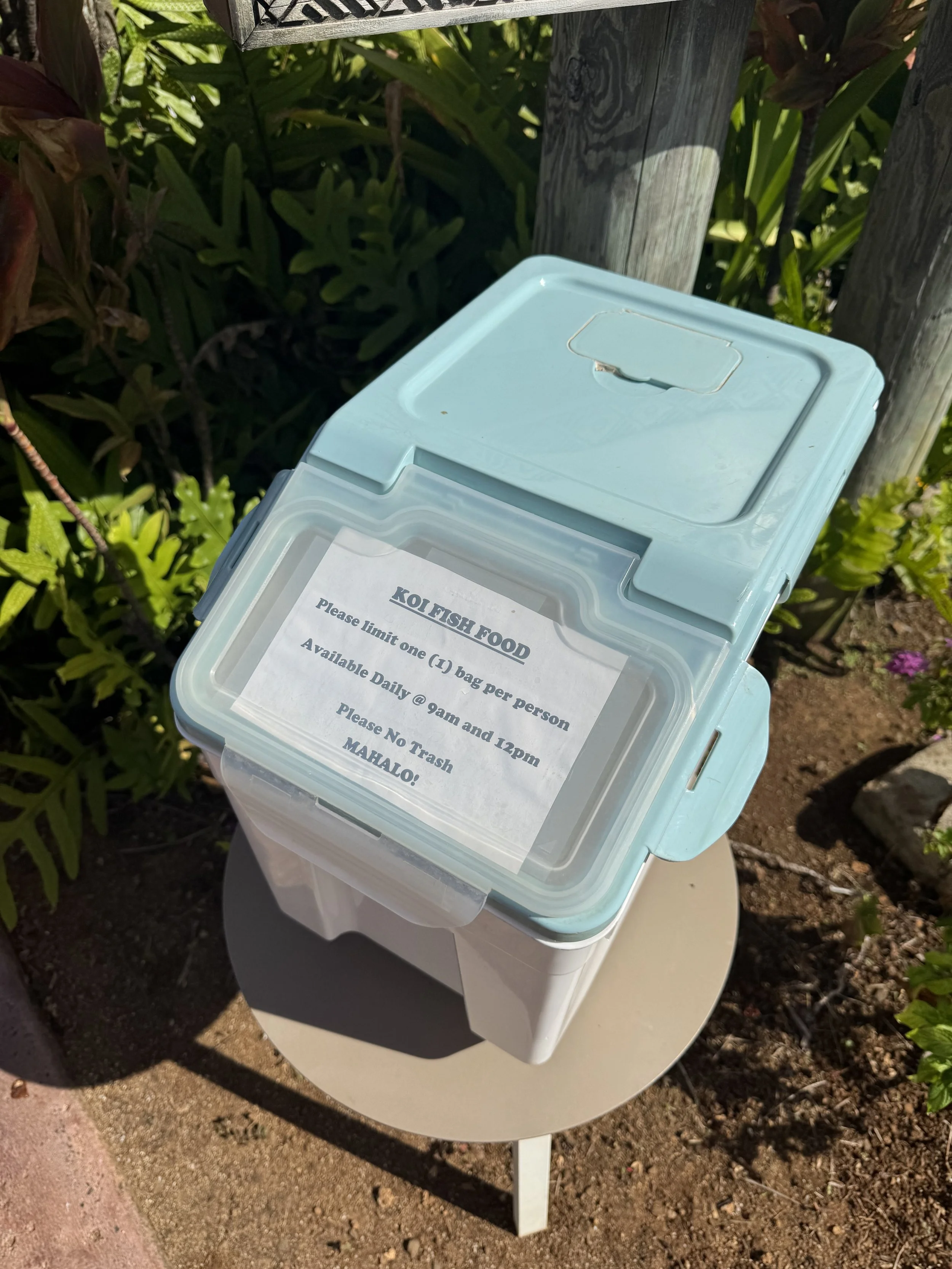 🐟 Twice a day they put out food for guests to feed the koi fish outside the Tidepools restaurant.