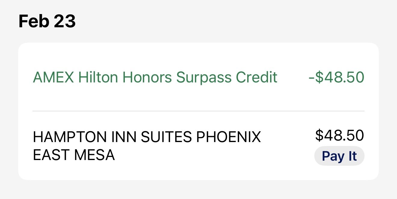 Hilton Honors American Express Surpass® Card: this card comes with a $50 quarterly credit toward purchases at a Hilton hotel. Since I didn’t have any Hilton stays this quarter, I had to get creative! I stopped by a local Hilton Garden Inn and purchased $50 worth of snacks from their snack shop in the front lobby, and this purchase was eligible to be covered by that credit.